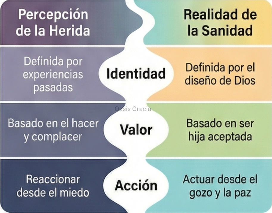 Estas letras revelan un contraste espiritual y emocional que define la vida de muchísimas mujeres hoy: la percepción de la herida versus la realidad de la sanidad.